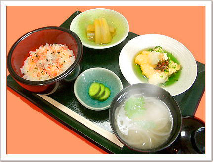 夏の暑い時期は冷やした麺類、幸喜特製サラダうどん・素麺・冷や麦・もり蕎麦・茶蕎麦が付いております。