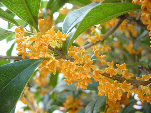 木犀(もくせい)科。 ・学名 Osmanthus fragrans var. aurantiacus Osmanthus : モクセイ属 fragrans : 芳香のある aurantiacus : 橙黄色の Osmanthus(オスマンサス)は、ギリシャ語の 「osme(香り)+ anthos(花)」が語源。開花時期は、 9/25頃〜10/10頃。 ・とてもよい香り。遠くにいても匂ってくる。