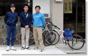 今回このツーリングにお付き合い戴いたのは当店のご常連さんでKさんという方です。Kさんには以前私が『今度自転車で揖斐川の方まで行くんですよ。』と話をした事がありました。Kさんとても興味を持って聞いて下さり『良かったら僕も付き合いますよ。』と返事を下さいました。Kさんは日頃からスポーツジムで体を鍛えておられ、琵琶湖一週(約200q)を一日で成し遂げた強者です。そんなスーパーマンの様な方と一緒にツーリングを楽しむ事になりました。