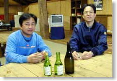 一番最初にちょこに注いで下さったのは【純米大吟醸】でした。この春にデビューする新銘柄です。《これが楽しみでここまで来たんだ!》と心の中で言っておりました。『うっ!うまい!!!』無濾過生原酒ですからちょっとハードな感じがしますが五味のバランスが実に良くとれてて良かった。食中酒としてその役割を充分果たしてくれそうな味わいでした。料理の相性として、煮物・焼き物・揚げ物にと守備範囲の広いお酒です。こいう酒を造って下さると料理人の私たちとしては嬉しくなります。若旦那の言うには『もう少し落ちついた頃がうまみが出ると思いますよ。』そんな事を言っておられました。
