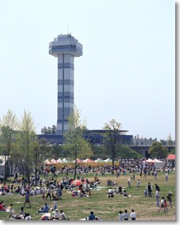 その事を思うと今回のツーリングは楽な物です。なにしろ揖斐川の堤防道路で、平坦な真っ直ぐな道路を走る訳ですから随分と気軽に思ってました。ところが私は大切な事を忘れてました。風…風です。これが難敵でした。進行方向に対して緩やかに向かい風が吹いていたのです。堤防道路は風を遮る物などありませんからもろにその影響を受けるのです。前を走るKさんは軽やかにペダルをこいでますが、私の両膝は連続して一時間の走行が限度でした。この日の為にというか健康維持の為一年半ばかりスイミングをしてるので関ヶ原に行った時の事思うと体力もそれなりについているので安心しておりましたが、考えてるほどあまいコースではなかったです。一時間走って15分ほどのインターバルを入れました。その度に水分補給をして体を休めました。大垣より35q地点の頃体力の消耗も結構限界にきておりまして10分・15分のインターバルでは楽になりません。信号待ちしてる間にKさんに『どこがでコーヒーでも飲みましょう!』と言ったらKさんは『じゃあこの先の木曽三川公園でコーヒーにしましょう。』と言って下さいました。《あぁぁぁぁぁぁ…これでしばらく休みがとれる〜》この辺の地形は少しアップダウンがあってやがて木曽山川公園の展望タワーが遠くに見えて来ました。《もうすぐだ〜頑張れ〜》と自分に渇を入れながら走りました。でも遠くに見える展望タワーはなかな近くになりません。