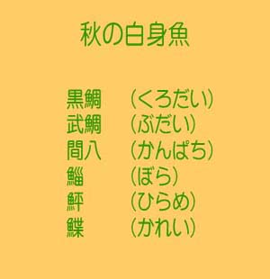 天然の白身では鯛・平目が美味しい季節になりました。河豚も美味しい時季ですね。正に食欲の秋と言ったところでしょうか。そして、当店では、水槽にカワハギなども泳がせておりますので活け造りなとも楽しんで戴けます。 うすづくりのカワハギは河豚の造りに匹敵するほどの美味しさがありよ!これらの白身はにぎりとしても美味しく戴ける一品です。是非味わって下さい!