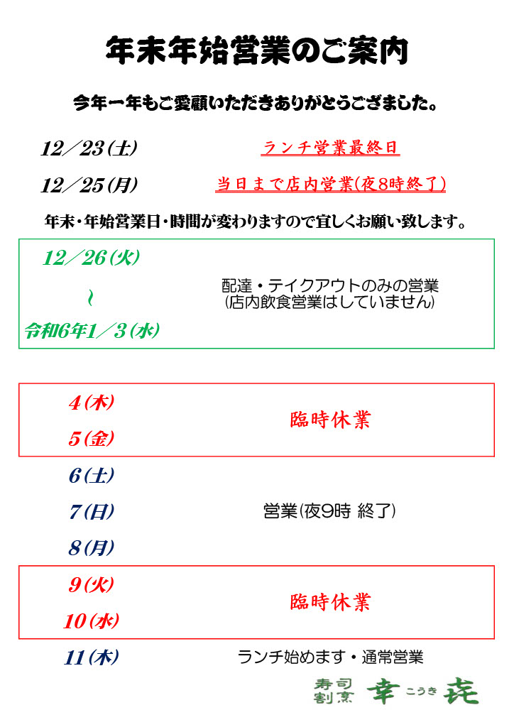 | ■ひらめ ■かつを ■真たい ■はまち ■赤いか ■真あじ ■さば ■間八 |
