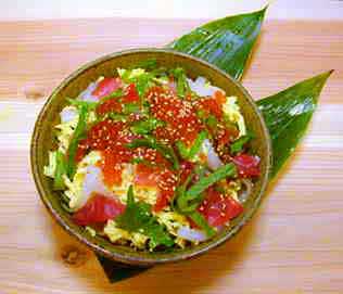 で、暫くすると姪っ子は嬉しそうに出来上がったばかりのちらし寿司を持って皆がいる厨房に現れたのです。『あ~出来た出来たっと!』と実に満足そうに言うのです。それを見て皆は息の止まる様な衝撃を憶えました。大将も目がすっかり点(懐かしい言葉ですね)になって言葉をなくしておりました。そのちらし寿司のまあ豪華な事、皆唖然とするほどの物でした。しゃりの上に乗っている物は