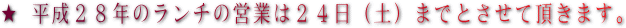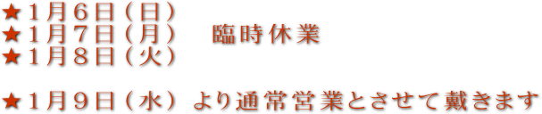年末・年始の営業は下記の様に一部変更させて戴きますのでご了承願います。