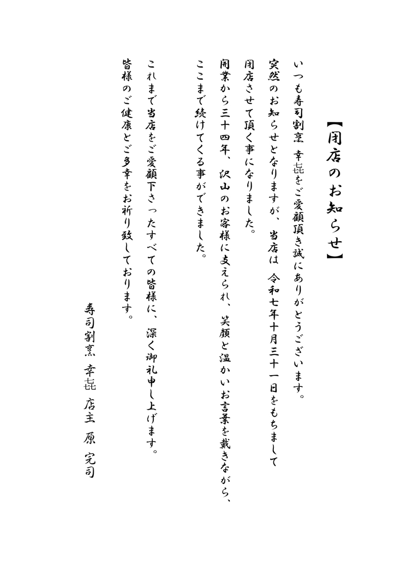 | 三重県四日市羽津町23-15・寿司割烹幸喜 TEL(059)333-7288・近鉄霞ヶ浦駅前の寿司です。・評判の寿司屋として美味しいにぎり寿司、うまい寿司、鮨、美味しいさば寿司、美味しいちらし寿司、美味しい巻きずし、評判の押し寿司では鯖バッテラ・穴子押し寿司など・美味しい料理・一品料理・季節料理・当店で使えるカードです。楽天カード・ビサ・マスター・JCB・アメリカンエキスプレス・ダイナースクラブ・ディスカバリーがご使用できます。当店は全席禁煙となっておりますので何卒ご理解戴きます様お願い申し上げます。楽天ペイ取扱加盟店。寿司宅配。当店はPayPay取り扱い店でございます。 |